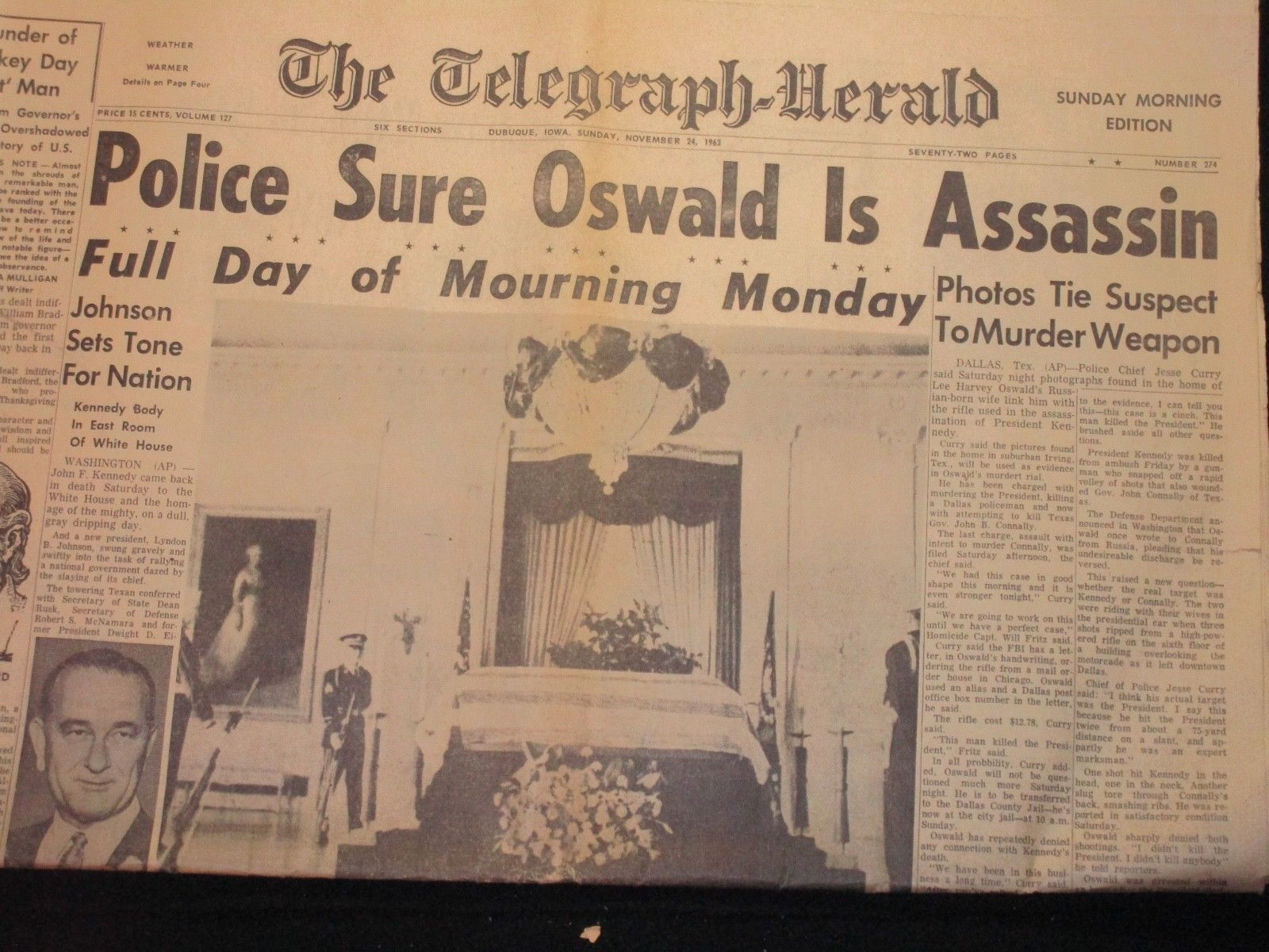 "POLICE SURE OSWALD IS ASSASSIN"TELEGRAPH HERALD DUBUQUE IOWA 11/24 1963 3 SEC