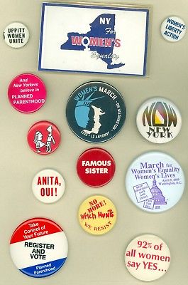 Title (ebay affiliate link): 13 Vintage 80s-2017 New York Women''s Rights Equality & Cause Pinback Buttons