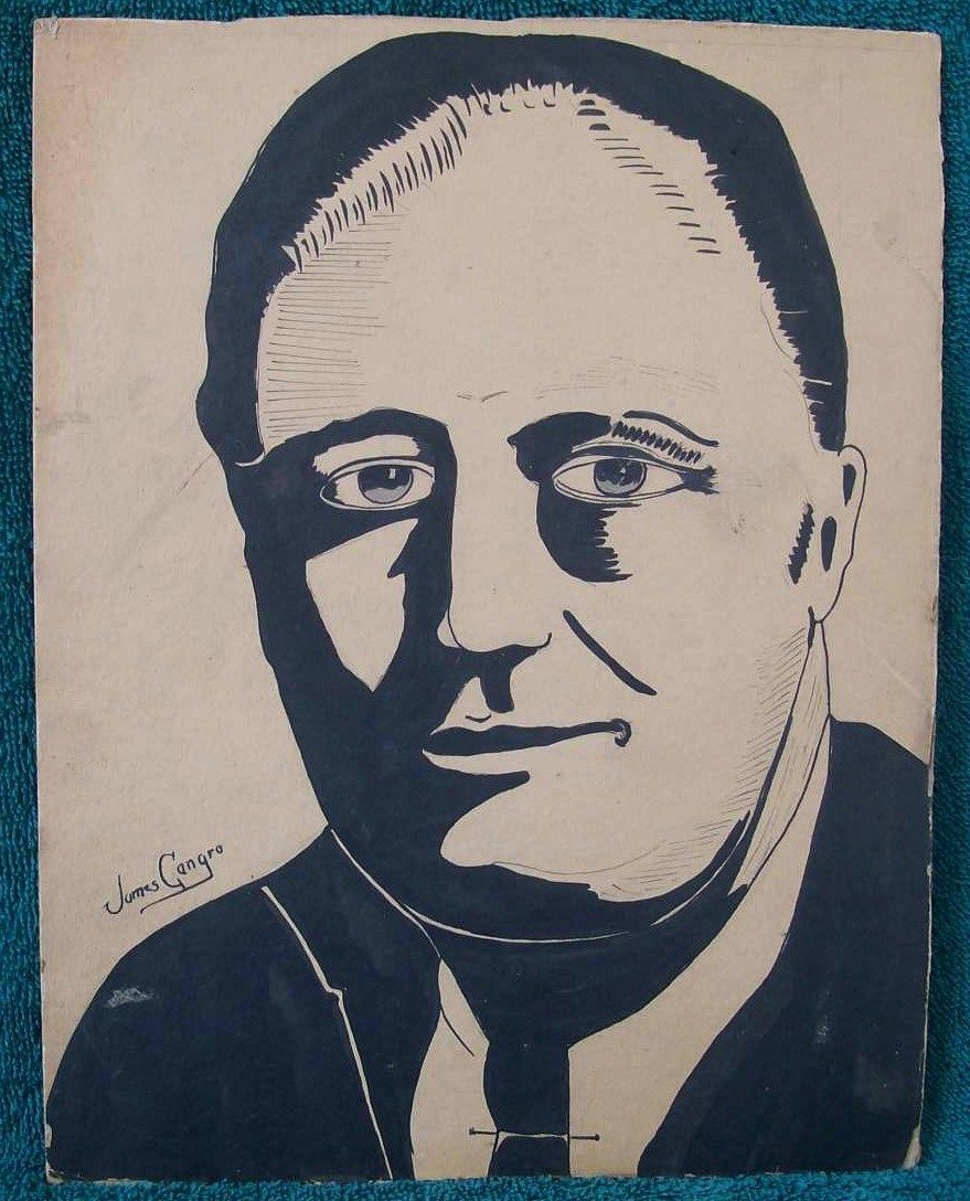 WPA ERA 1930''s ORIGINAL PRESIDENT FDR AMERICAN ILLUSTRATION ART PAINTING 9"x7"NR