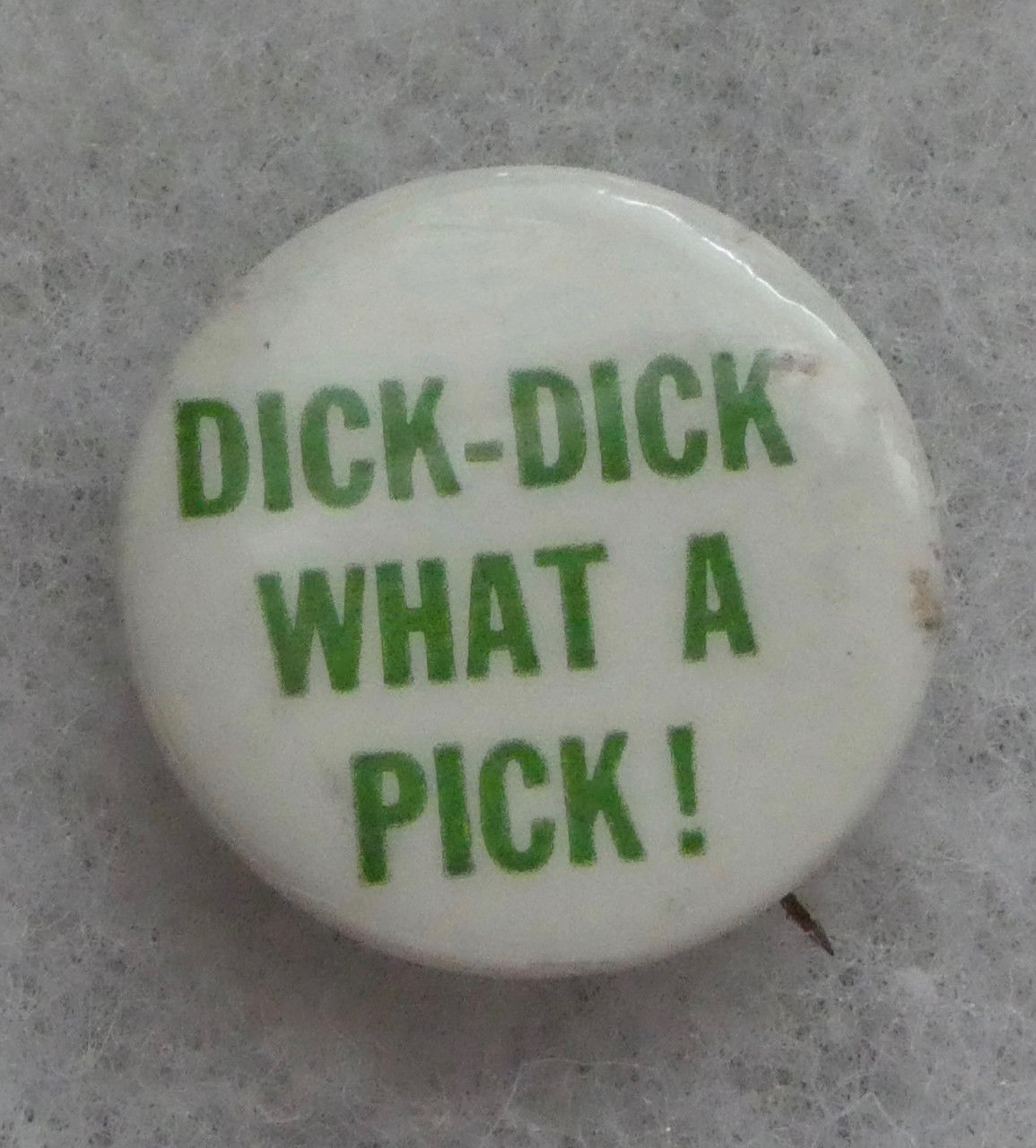 Title (ebay affiliate link): VINTAGE 1970''S ANTI-NIXON "DICK-DICK WHAT A PRICK" BUTTON