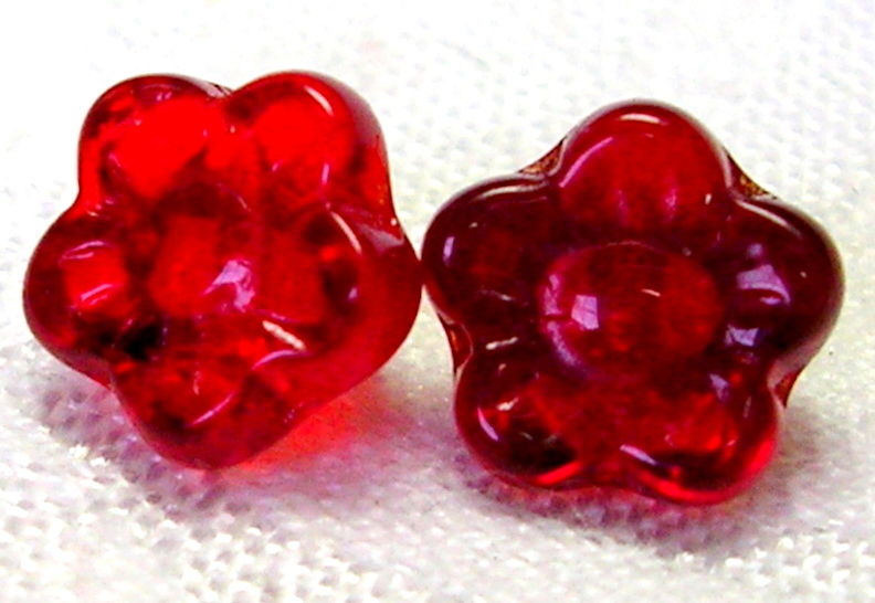 Title (ebay affiliate link): SWEET PAIR OF VINTAGE RUBY DEPRESSION GLASS POSY FLOWER BUTTONS