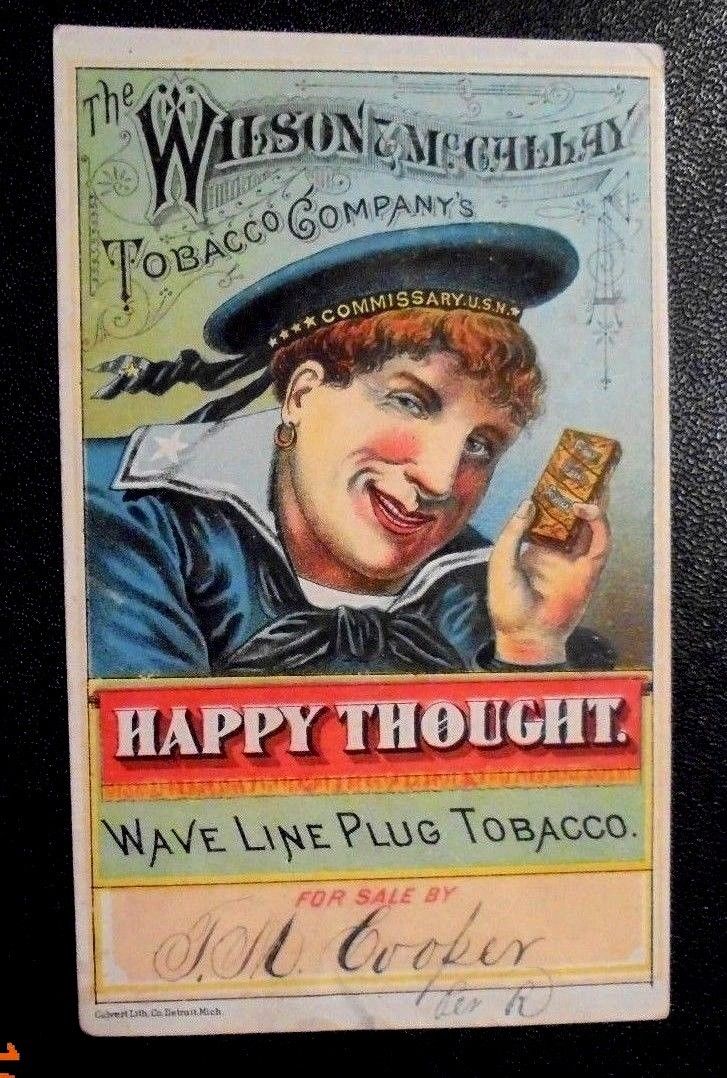 Title (ebay affiliate link): graphic Victorian trade card advertising Happy Thought Tobacco