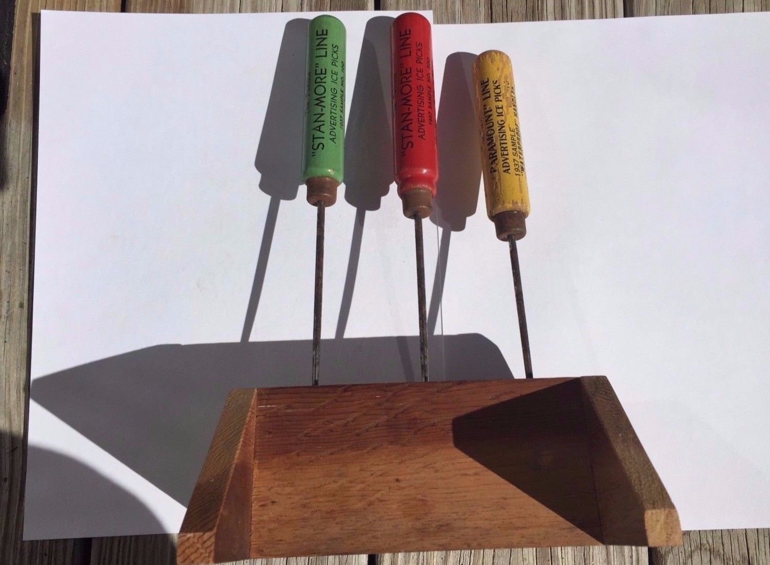 Title (ebay affiliate link): Antique Ice Pick ''STAN-MORE LINE'' advertised on the handles