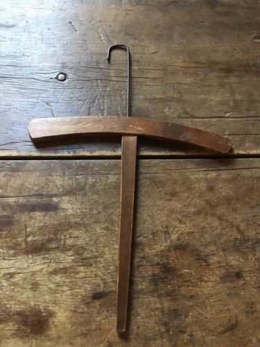 RARE Old Antique Treen Wooden Shaker Child''s Clothes Hanger Textile AAFA