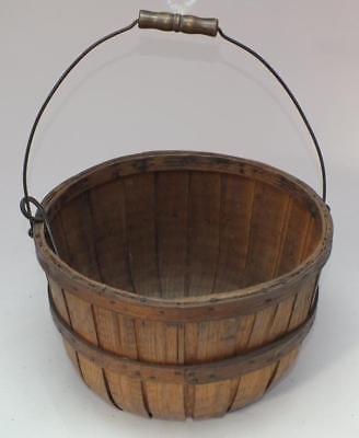 BEAUTIFUL ANTIQUE BAIL HANDLE APPLE BASKET WITH IRON HANGING HOOK