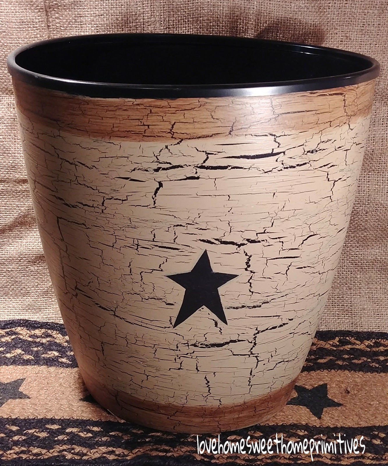 Title (ebay affiliate link): Primitive Crackle Tan & Black Stars Wastebasket NEW ~ Bathroom Decor