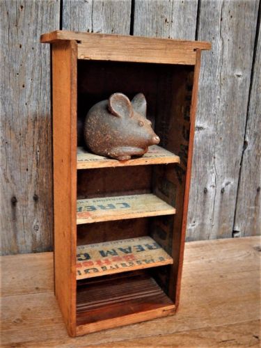Antique Vtg Kraft Cheese Crate Box Divided Parts Bin Make-Do Shelf w/ Mouse OOAK