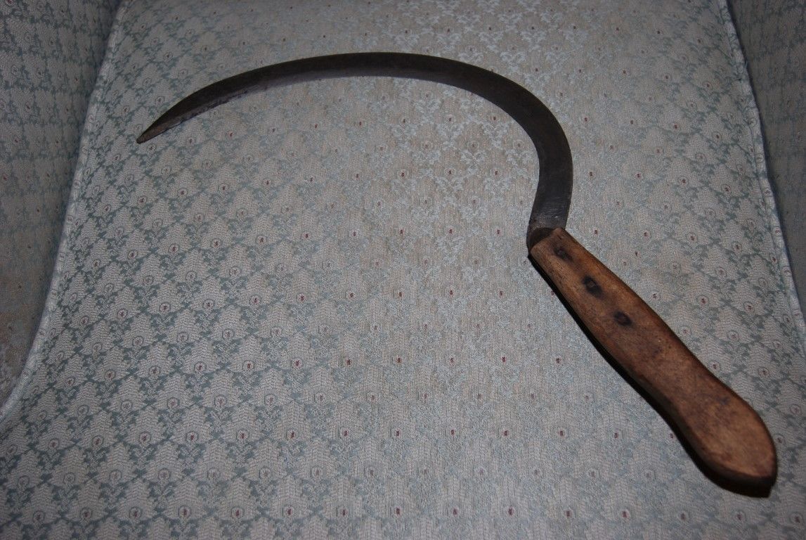 Title (ebay affiliate link): Vintage Hand Sickle Scythe W.C. Co. Village Blacksmith Pat. Sept. 1908.