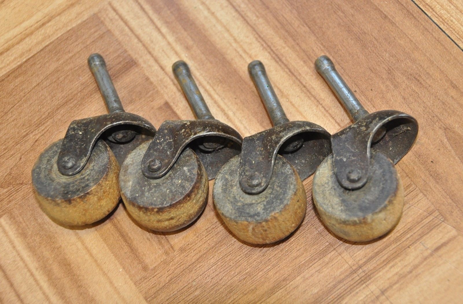 SET (4) VINTAGE CASTORS W/ WOOD WHEELS