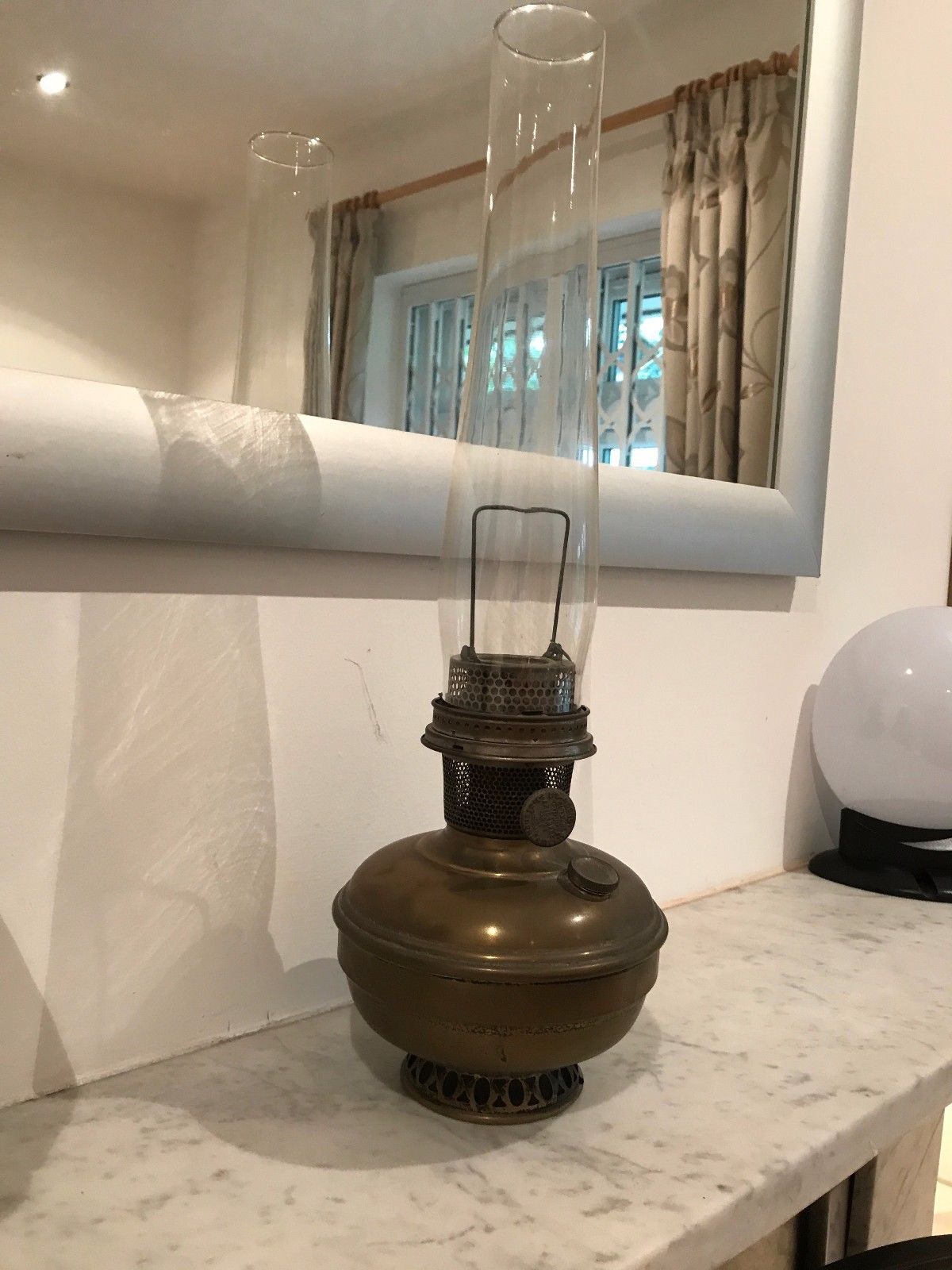 OLD BRASS AND GLASS OIL LAMP, VINTAGE, SEE PIC