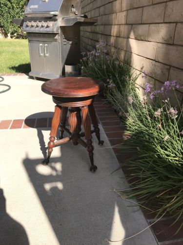Title (ebay affiliate link): Antique Piano Organ Stool Bench Seat Vintage Victorian Wood Glass Claw Foot