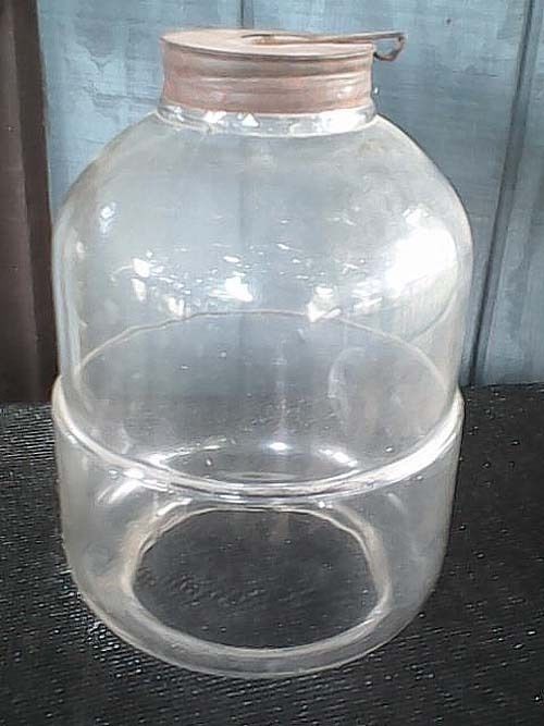 HOOSIER CABINET GLASS DISPENSER W/ METAL LID SUGAR FLOUR PRE 1917 EVC