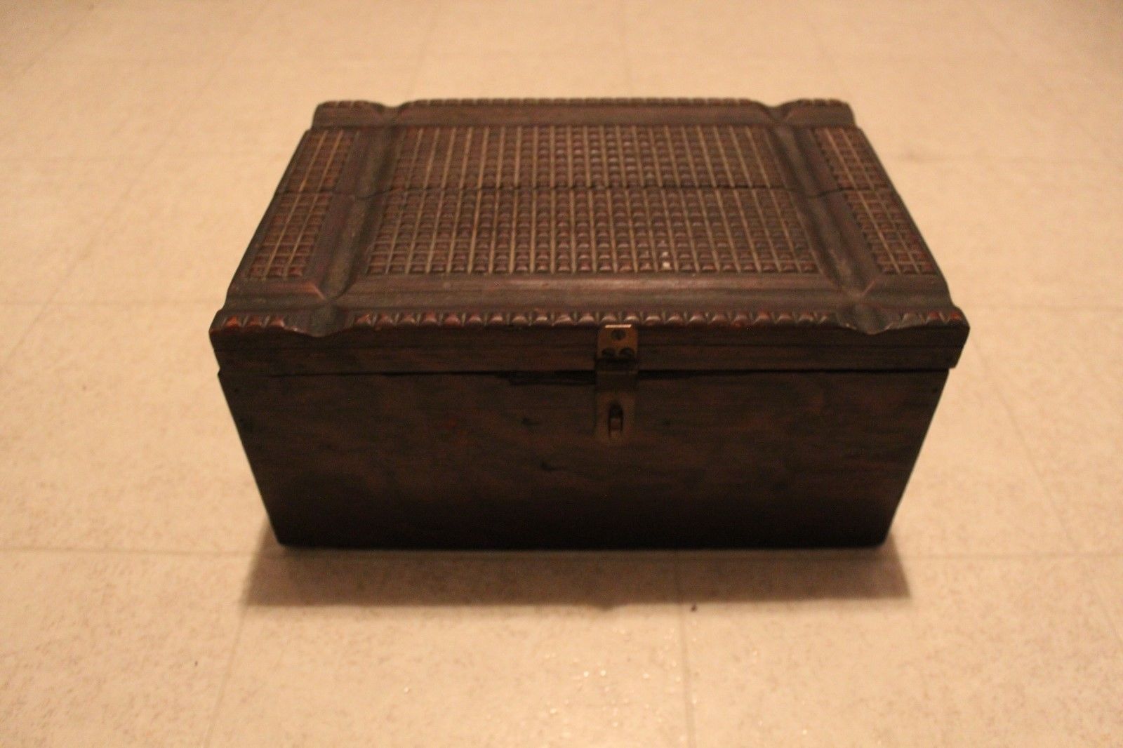 Title (ebay affiliate link): RARE Antique Wooden Box Hand Made Tramp Art Style Top Primitive Hand Made