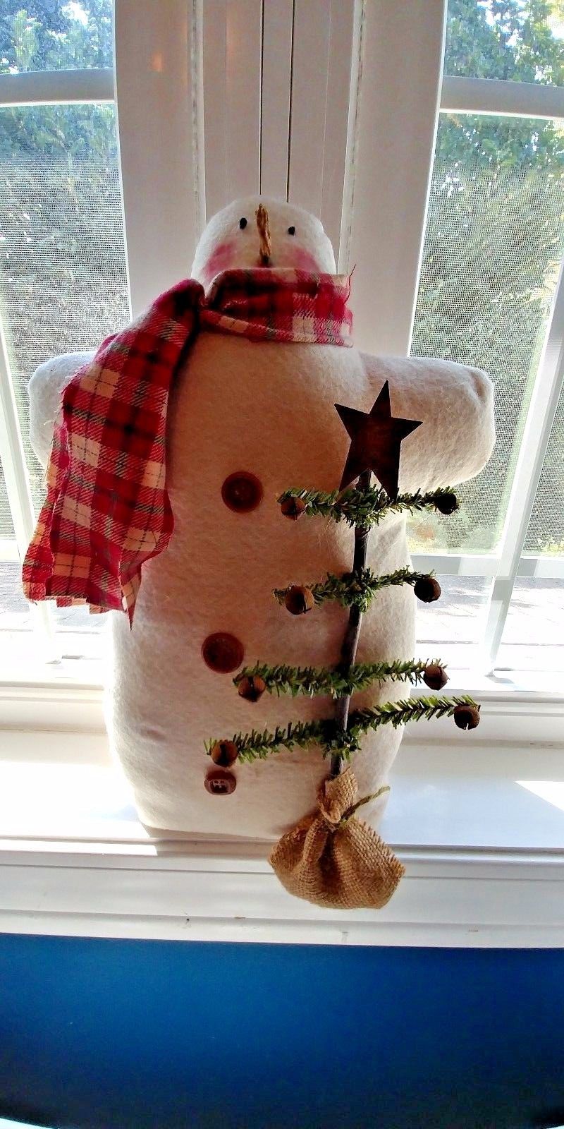 PRIMITIVE ~~ SNOWMAN WITH TREE