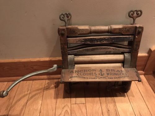 Title (ebay affiliate link): ANCHOR BRAND ANTIQUE CLOTHES WRINGER ~ BEST ON EARTH ~ FOR FAMILY USE ~ PAT 1896