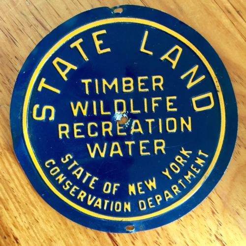 Title (ebay affiliate link): Vintage New York State Land Sign Timber Wildlife Water Rec w Bullet Hole Nice