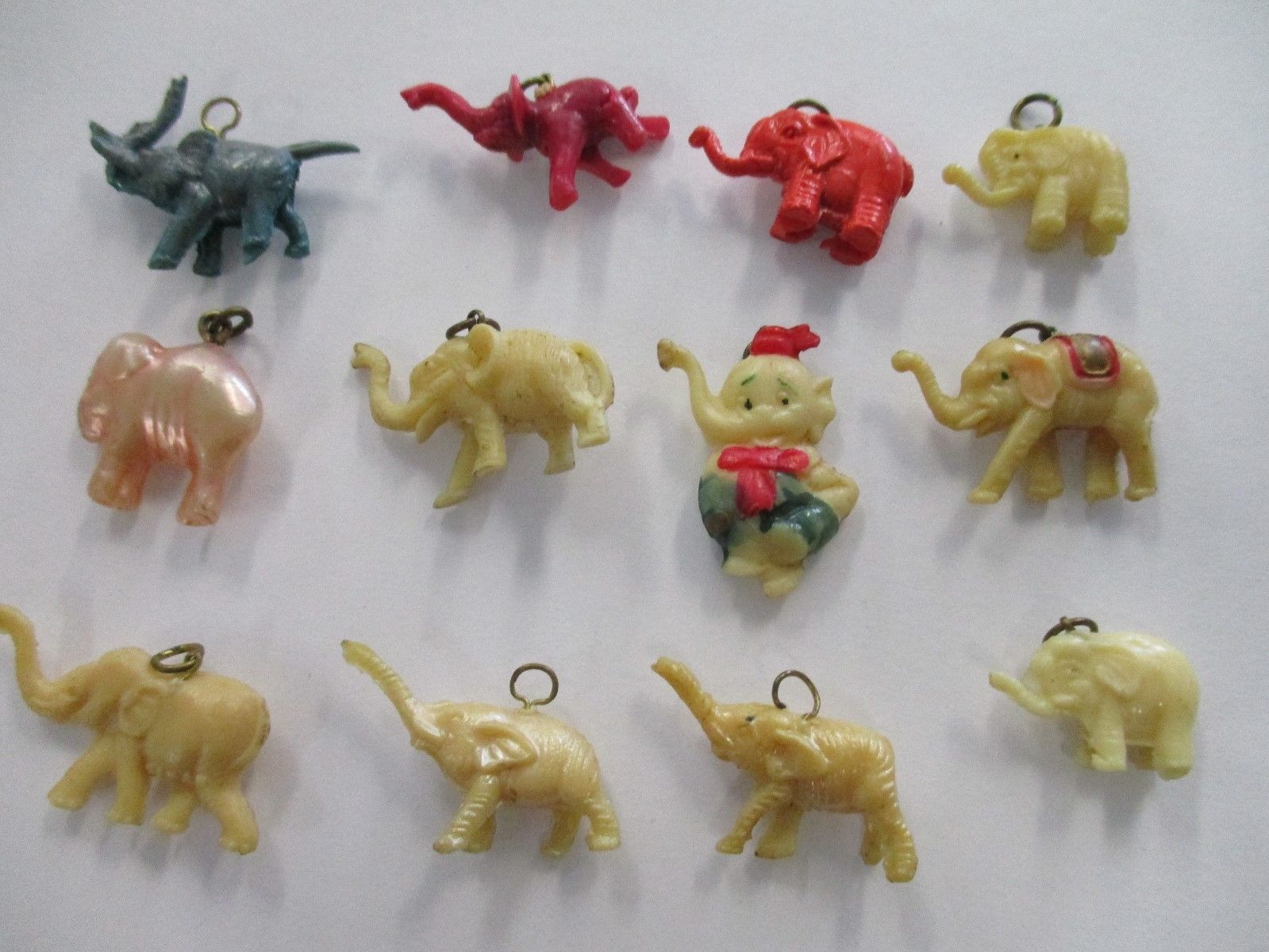 Vintage Cracker Jack charms lot of 12 elephants metal rings some painted