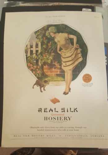 Original 1925 Advertising for Real Silk Hosiery Featuring Boston Terrier Puppy