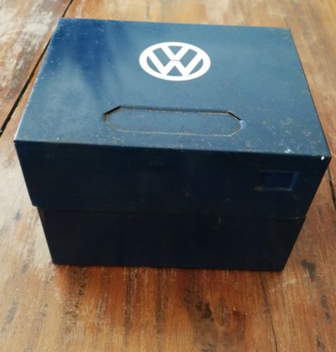 Title (ebay affiliate link): Vintage Volkswagen VW Collectors Tin Made In Canada Pressed Steel Navy Blue