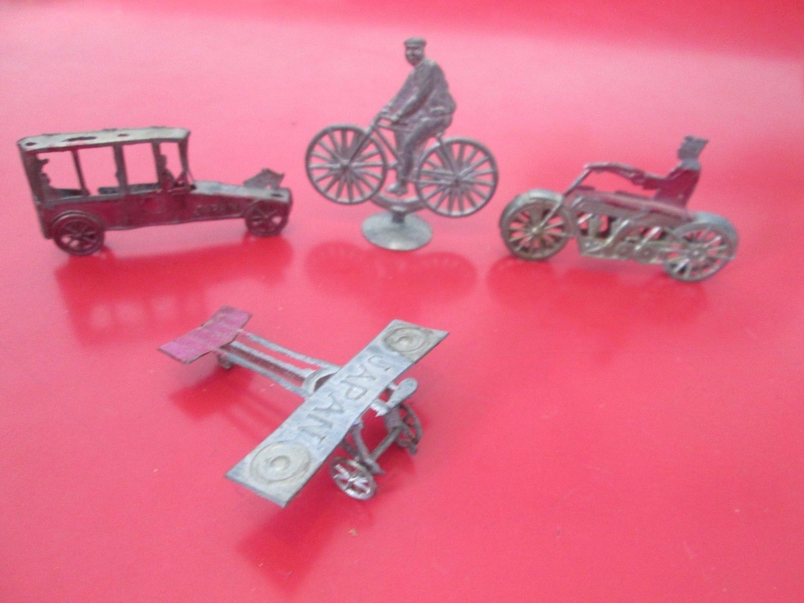 4 Antique RARE Early 1900''s Cast Metal - CRACKER JACK ?? TOYS -