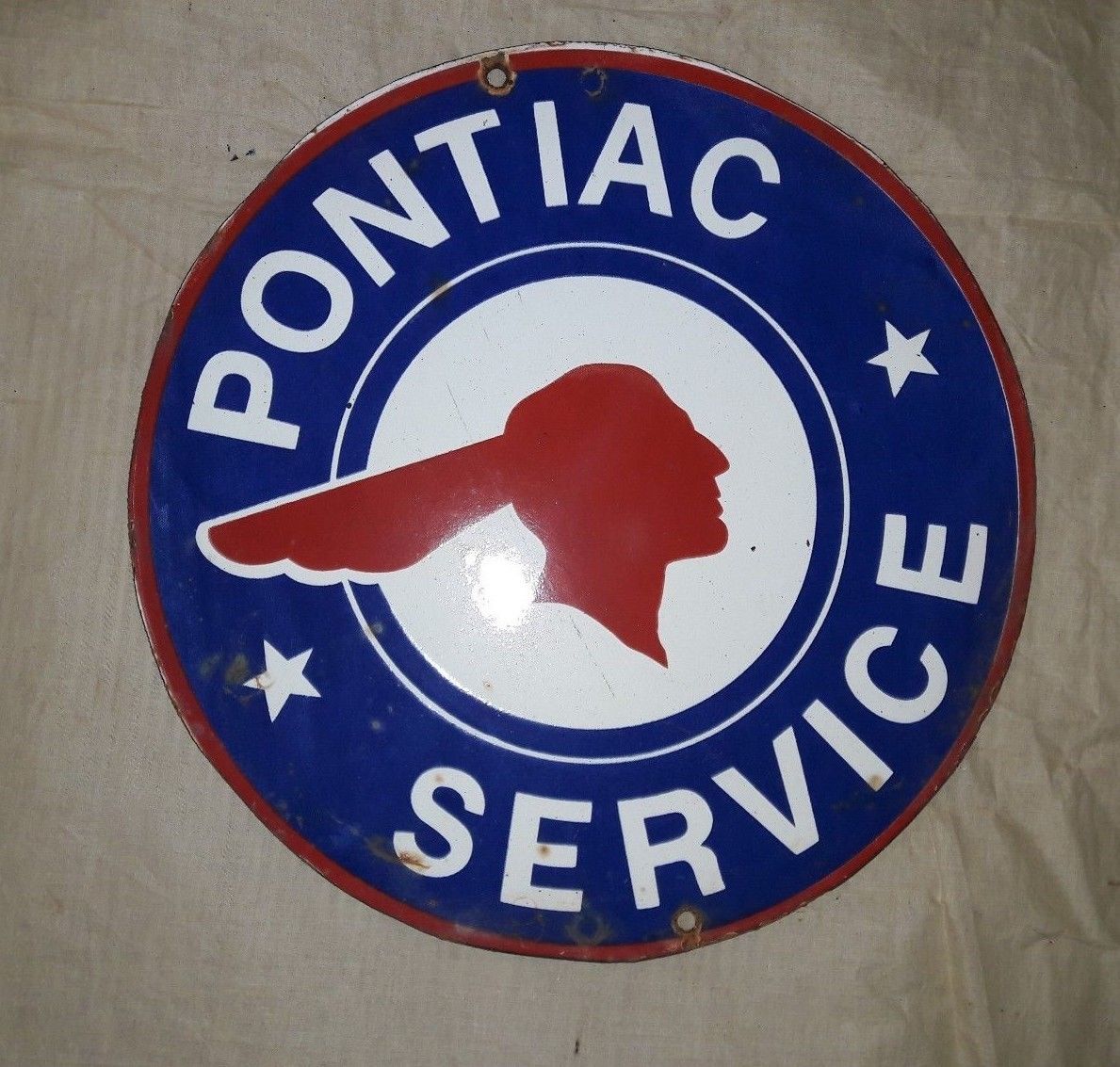 PONTIAC SERVICE Enamel Sign SIZE 12" ROUND