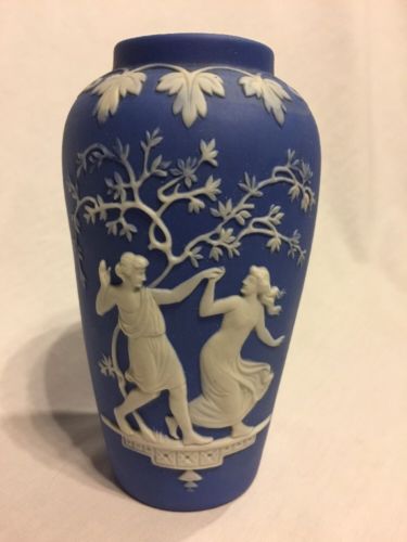 SCHAFER AND VATER, HIGH RELIEF JASPERWARE VASE, DANCING COUPLE RARE