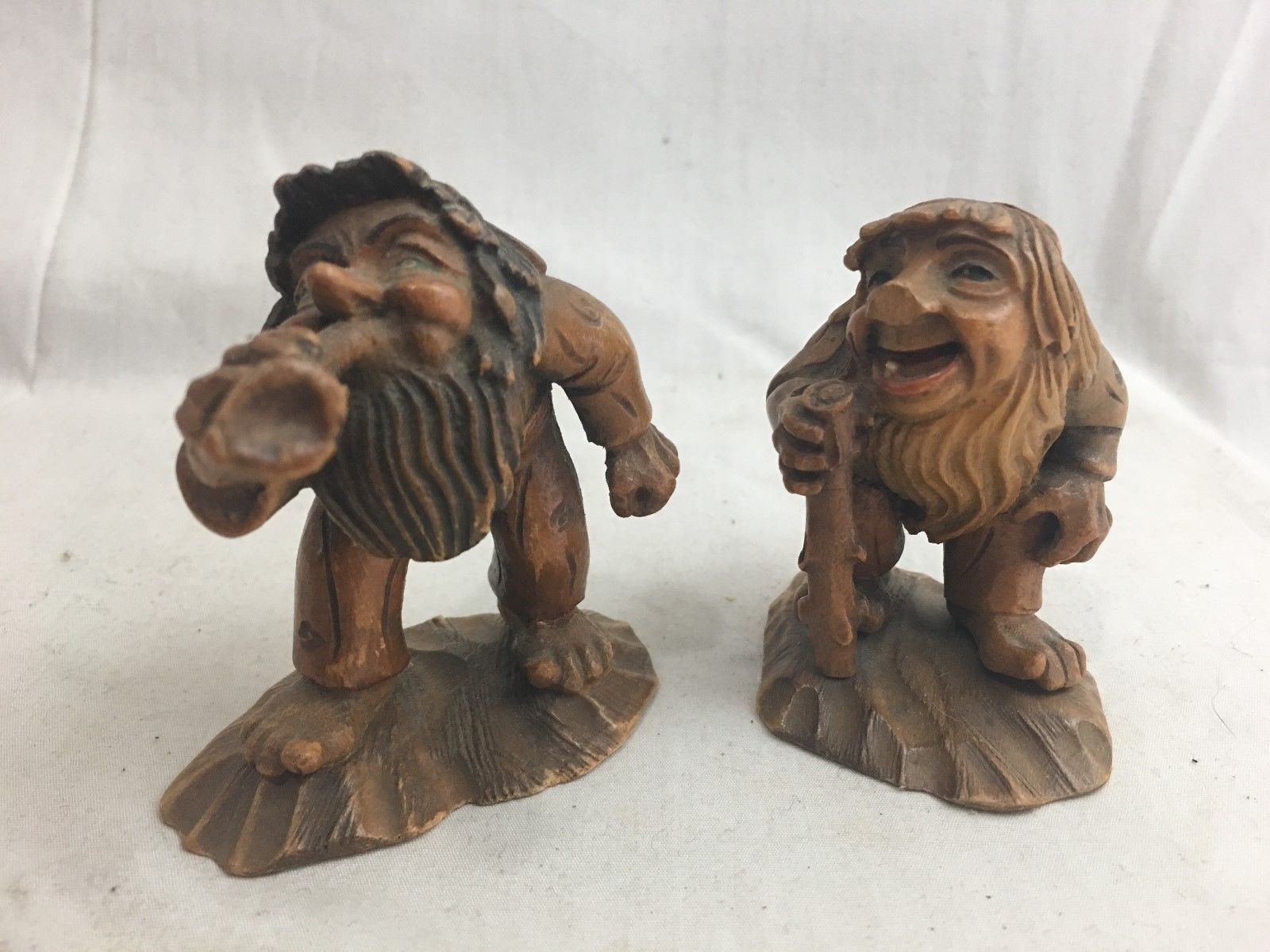 Title (ebay affiliate link): (2) Vint. Italy ANRI Little Folks of Salvans Trolls Hand Carved Wooden Figures