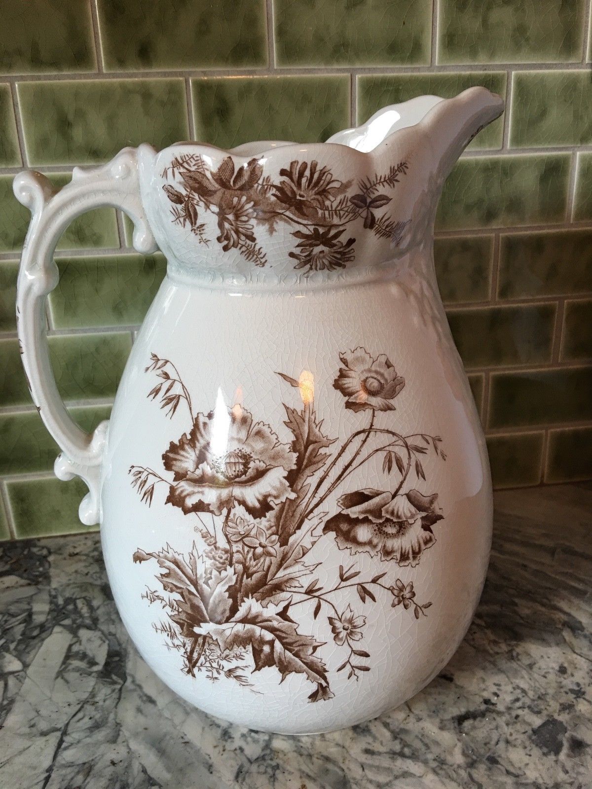 Title (ebay affiliate link): Victorian (Pre-1896) Large Brown and White Transferware Pitcher/Jug England