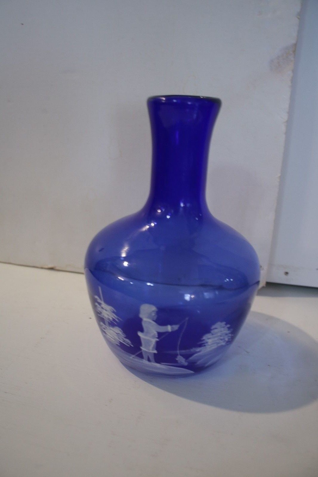 Cobalt blue Mary Gregory glass vase