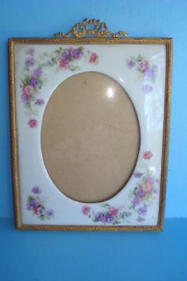 ANTIQUE / FRENCH VICTORIAN BRASS & PORCELAIN PICTURE FRAME