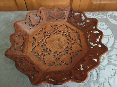 Vintage "Carved Cut Out Design Wooden Bowl" No Markings