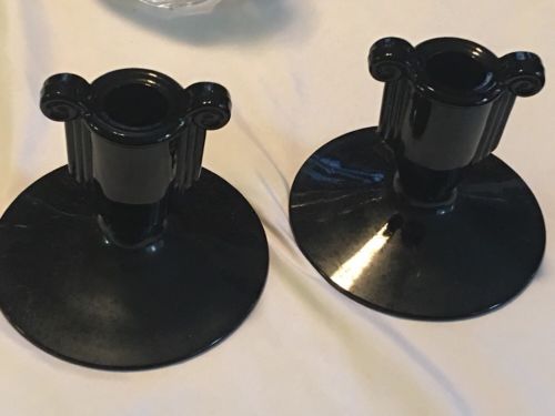 CUTE VINTAGE BLACK AMETHYST ART DECO CANDLESTICKS MINTY