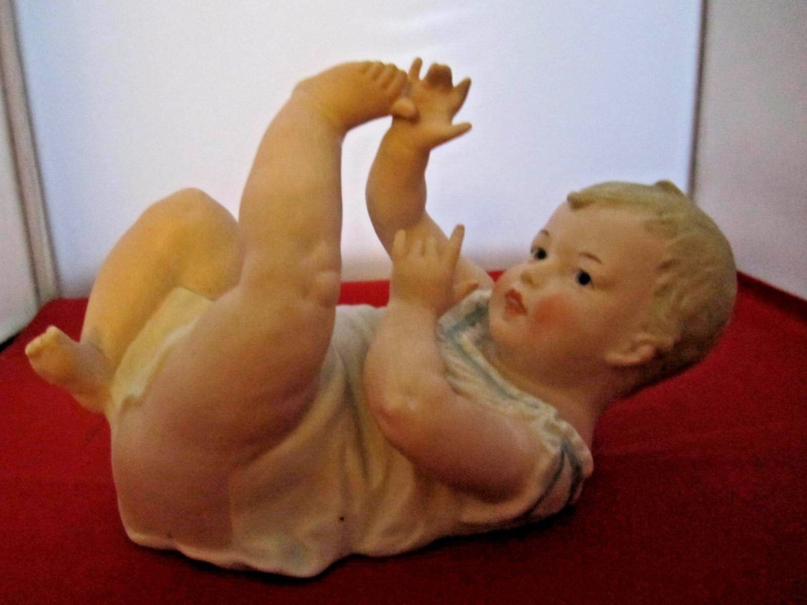 Title (ebay affiliate link): Antique Gebruder Heubach Germany Bisque Porcelain Piano Baby on Back-Marked