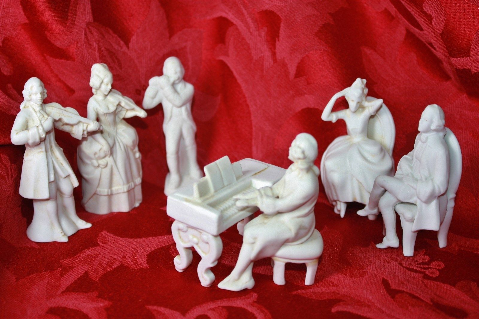 vintage bisque porcelain German Victorian figurine set of 7 pieces miniature