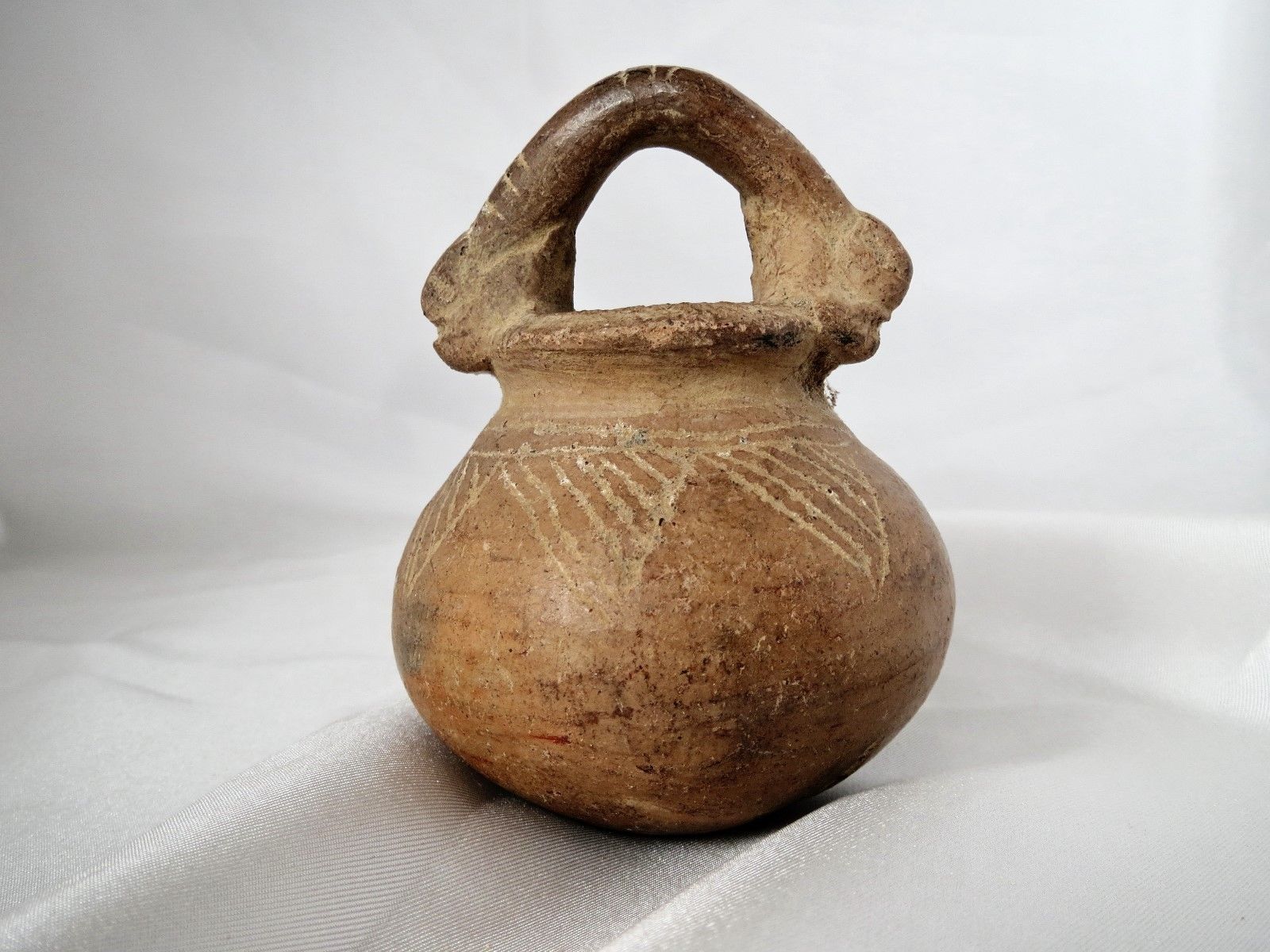 Title (ebay affiliate link): Ancient small pottery basket-form vessel with globular body from Costa Rica (?)