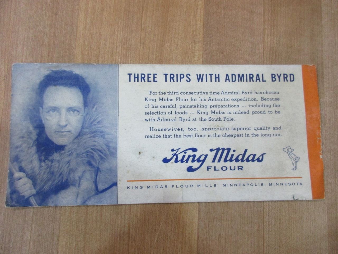 Vintage Ink Blotter King Midas Flour Trips with Admiral Byrd large >