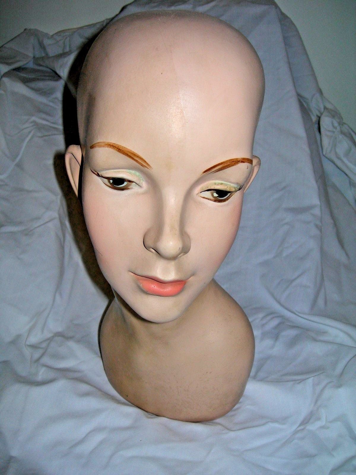 Title (ebay affiliate link): Vintage Plaster Hand Painted Female Mannequin Head Bust Wig Hat Jewelry Display
