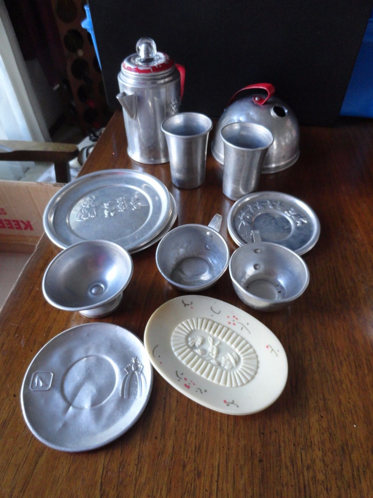 VINTAGE CHILD''S DISHES, COFFEE POT AND TEA POT