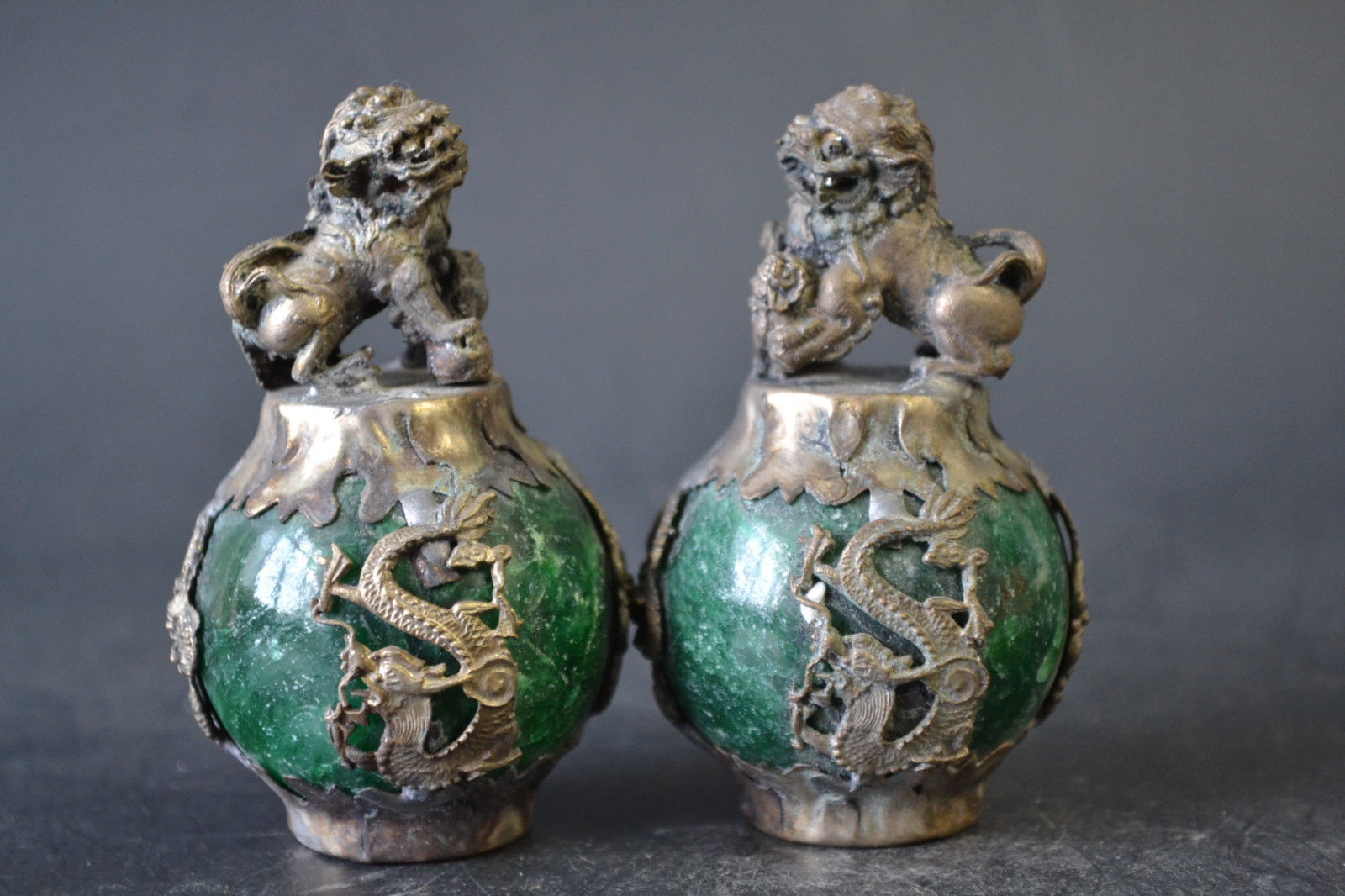 Title (ebay affiliate link): Collectible Vintage China Old Tibet Silver Jade Dragon Lion Noble Pair Statues