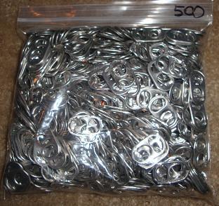 Title (ebay affiliate link): 500 Aluminum Soda Beer Pop Pull Tabs Recycle Craft Art