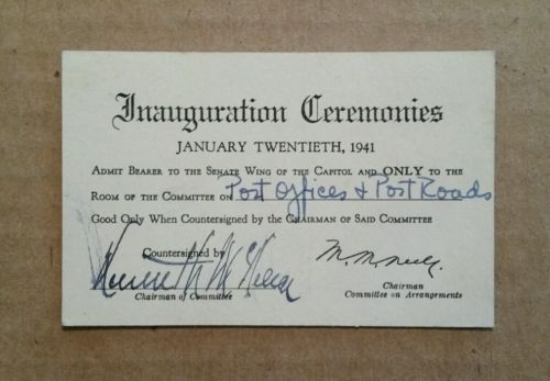 Title (ebay affiliate link): FDR Inauguration Ceremonies Senate Wing Pass,Jan.20,1941