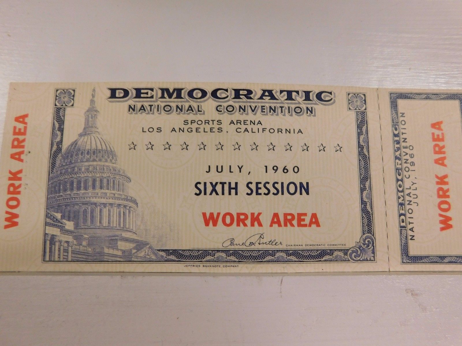 Title (ebay affiliate link): Democratic National Convention 1960 Sixth Session Work Area Unused ticket