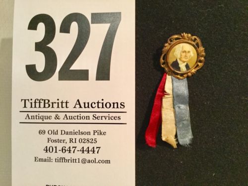 Title (ebay affiliate link): #327 - Early George Washington Red,White,Blue Ribbon Pinback By American Works