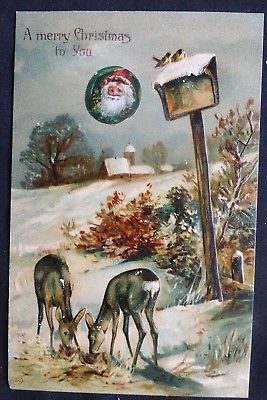 Title (ebay affiliate link): Postcard Old SANTA SEAL Deer Birds Embossed by EAS #5771