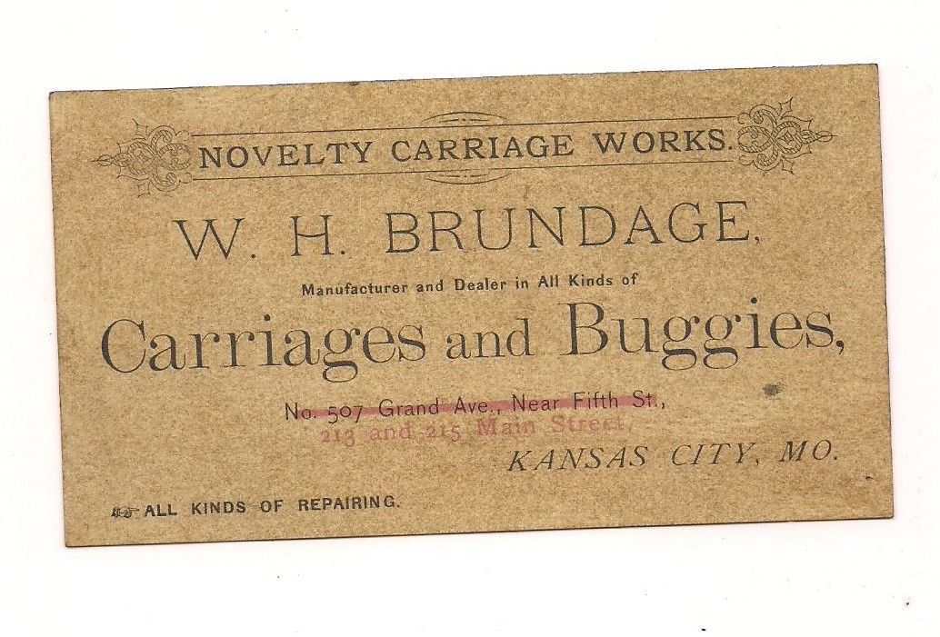 circa 1880 adverstising card, W.H. Brundage Carriage Works, Kansas City Missouri