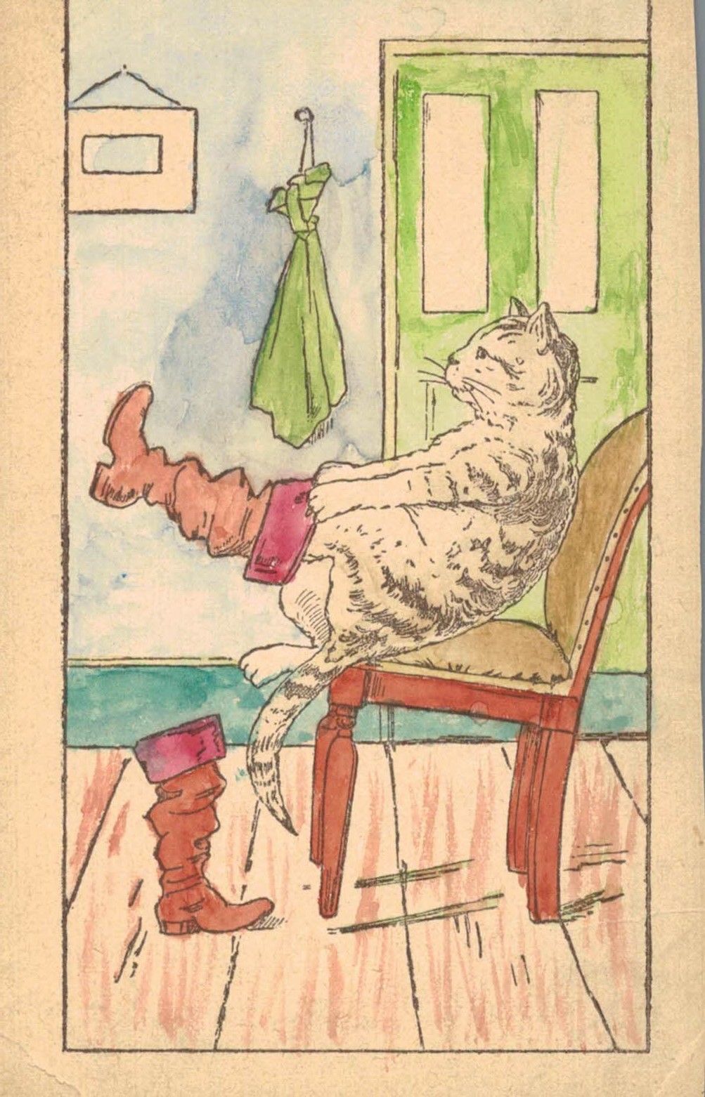 Vintage Cat,Postcard,"Puss in Boots",Hand-Colored,Fairy Tale,c.1901-06