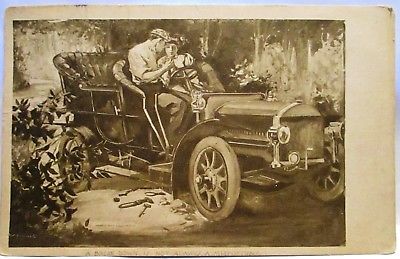 1909 ARTIST SIGNED POSTCARD A BREAK DOWN IS NOT ALWAYS A MINOR THING,EARLY CAR