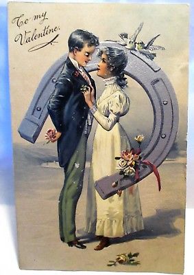 Title (ebay affiliate link): 1910 POSTCARD TO MY VALENTINE, COUPLE INSIDE LARGE HORSESHOE