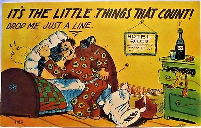 Title (ebay affiliate link): 1940s POSTCARD IT''S THE LITTLE THINGS THAT COUNT! MAN WITH BED BUGS