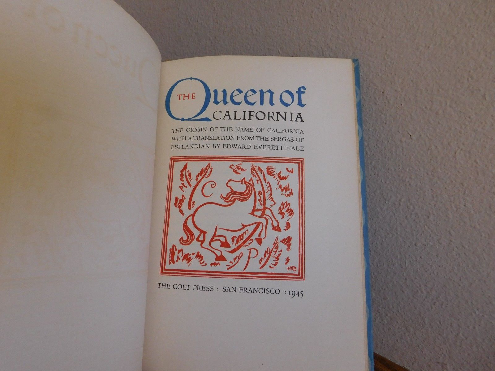 Title (ebay affiliate link): The Queen of California,translated by Edward Hale, 1945, 1/500 Colt Press,